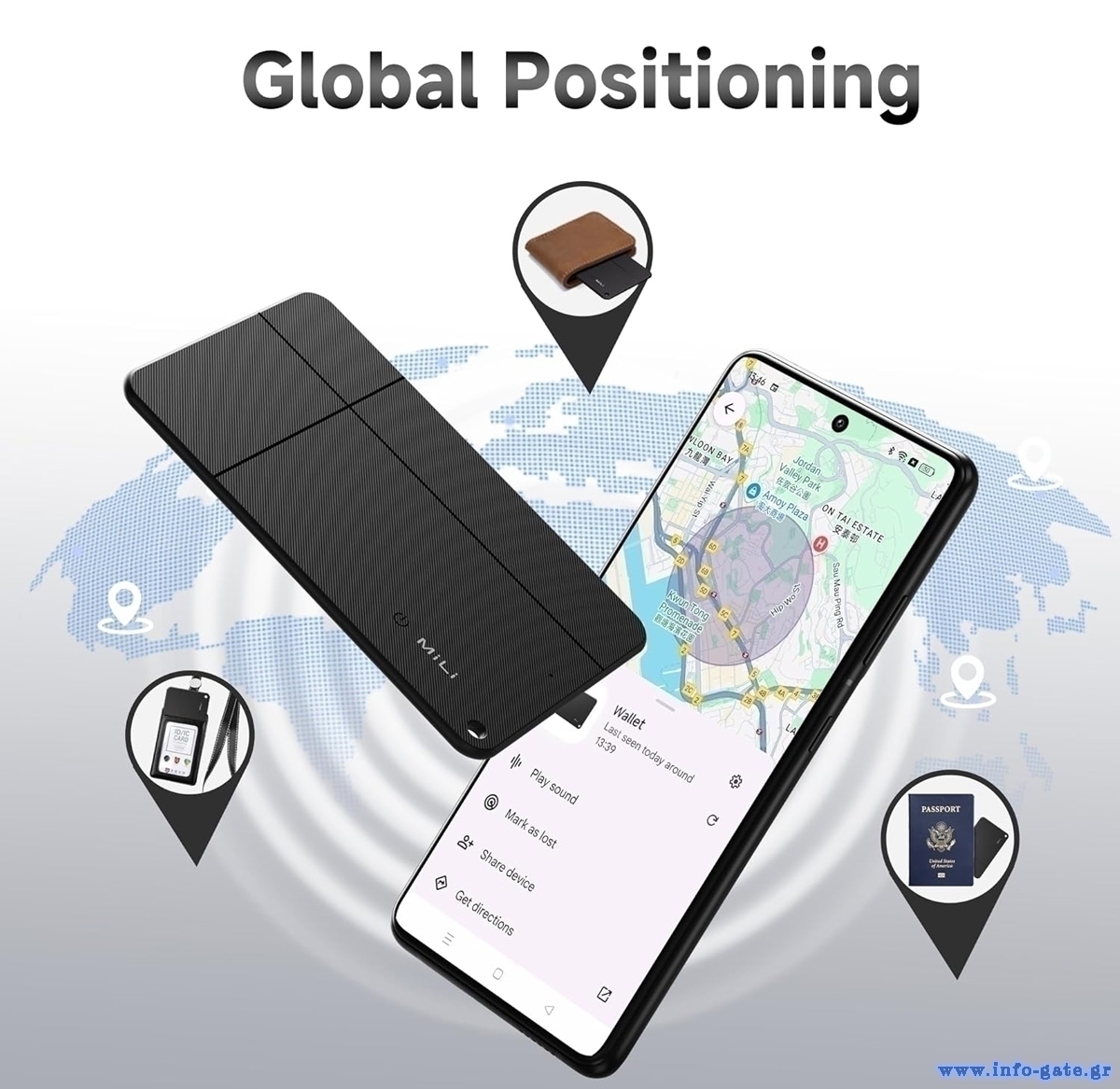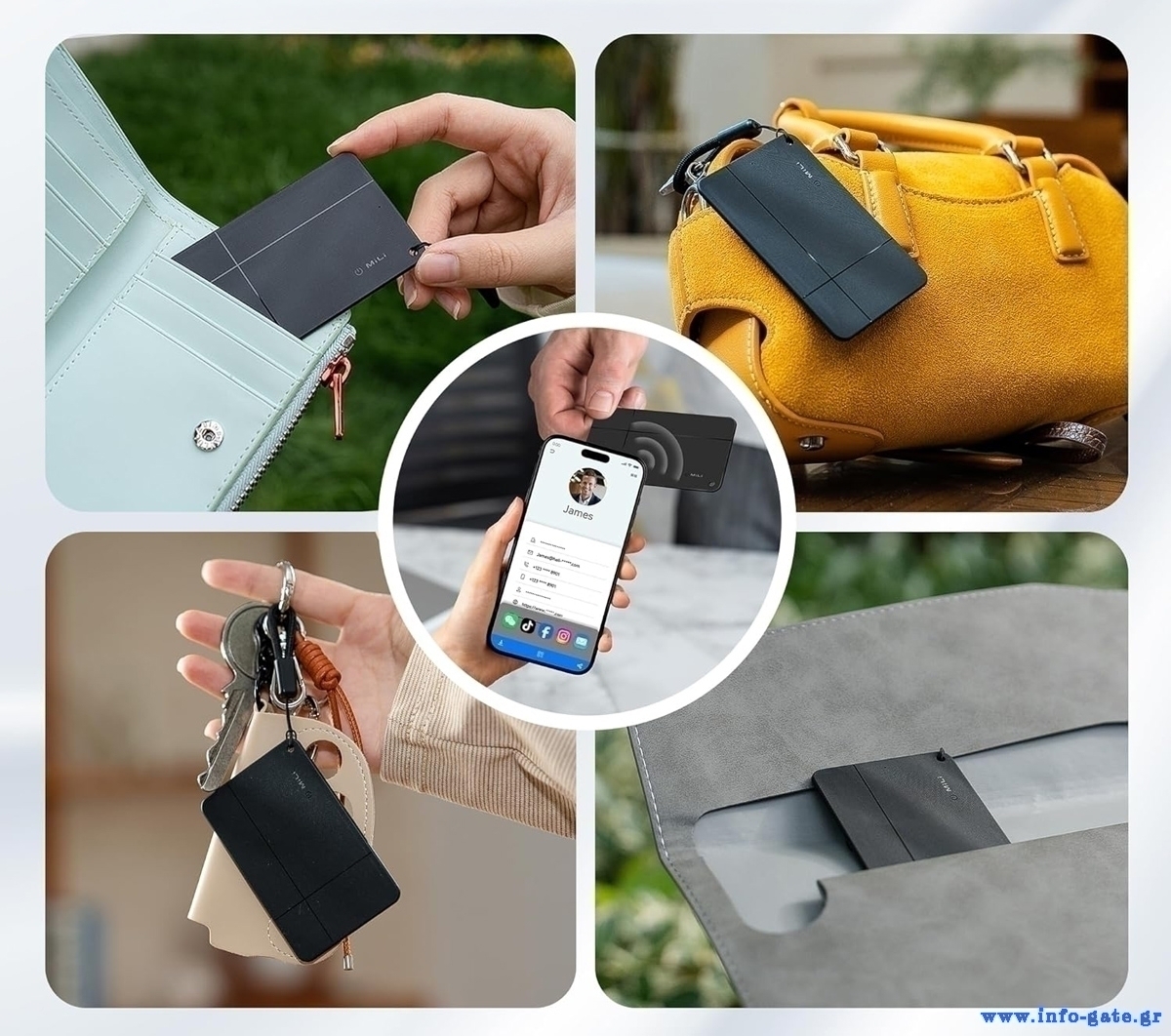 Μπορεί να τοποθετηθεί σε κλειδιά, πορτοφόλια, τσάντες ή άλλα προσωπικά σας αντικείμενα.