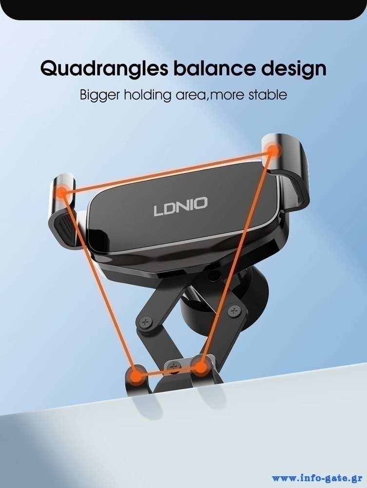 Συγκρατεί το smartphone σταθερό και ασφαλές με έξυπνο μηχανισμό συγκράτησης, ο οποίος ασφαλίζει το κινητό με το ίδιο του το βάρος της συσκευής, αποτρέποντας την πτώση του.
