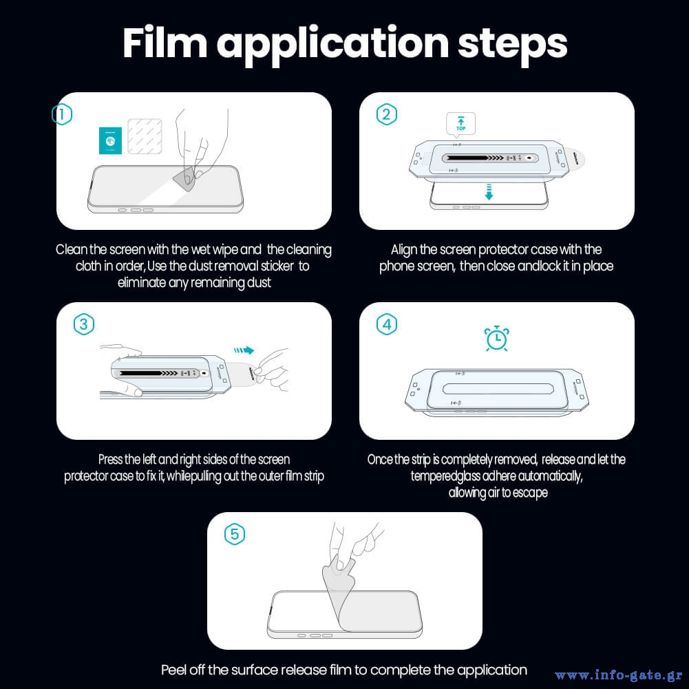 Στη συσκευασία συμπεριλαμβάνεται βολικό και εύκολο στη χρήση, πλαίσιο ευθυγράμμισης, που σας επιτρέπει να προσαρμόσετε με ακρίβεια το tempered glass πάνω στην οθόνη, εξαλείφοντας την πιθανότητα λάθους.