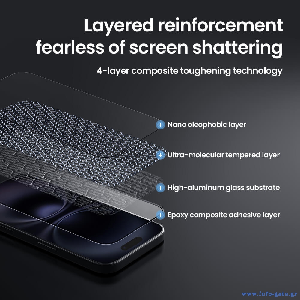 Στη συσκευασία συμπεριλαμβάνεται βολικό και εύκολο στη χρήση, πλαίσιο ευθυγράμμισης, που σας επιτρέπει να προσαρμόσετε με ακρίβεια το tempered glass πάνω στην οθόνη, εξαλείφοντας την πιθανότητα λάθους.