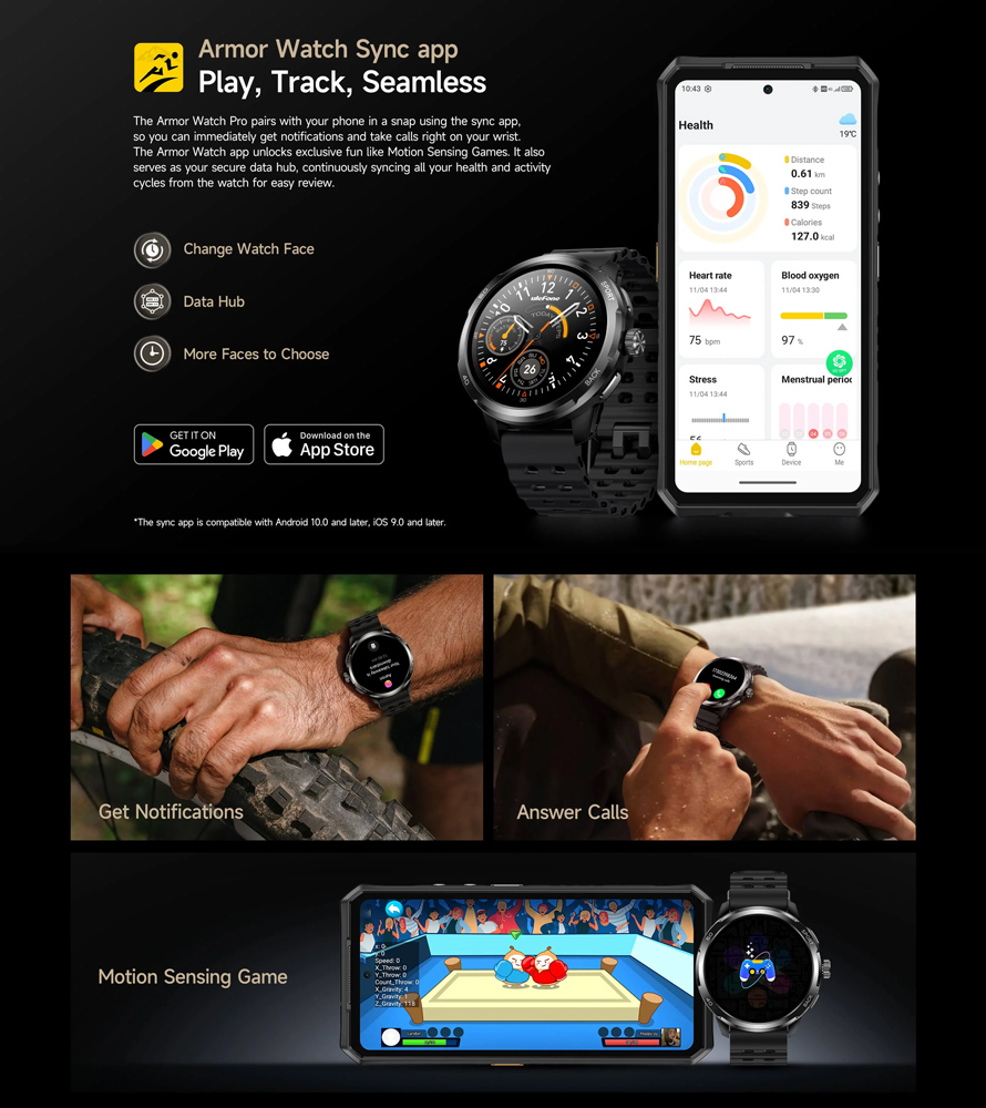 ULEFONE smartwatch Armor Watch Pro, 2x λουράκια, heart rate, 1.50" AMOLED, GPS, 5 ΑΤΜ/IP68/IP69K/MIL-STD-810H, μαύρο