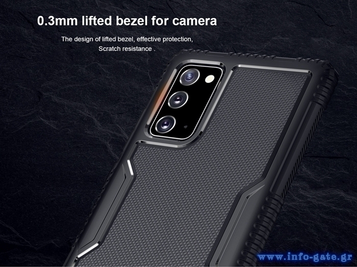 Η σειρά Tactics της Nillkin χαρακτηρίζεται από το ελαστικό εσωτερικό στρώμα TPU που προστατεύει απόλυτα το smartphone σας από χτυπήματα ή γρατζουνιές. Έχει αντιολισθητική επιφάνεια με αυξημένο χείλος περιμετρικά και διαθέτει ανυψωμένη στεφάνη 0.3mm στην πίσω όψη της θήκης για την προστασία της κάμερας.