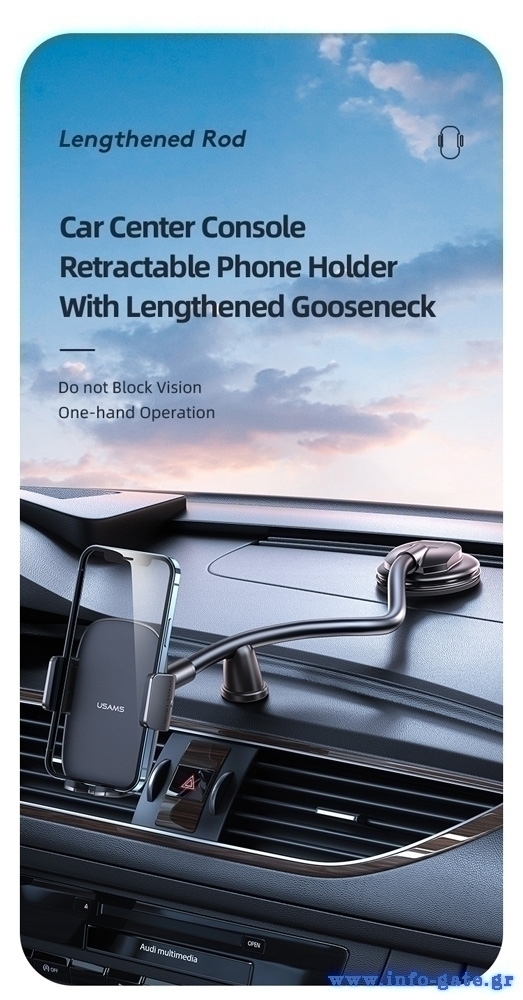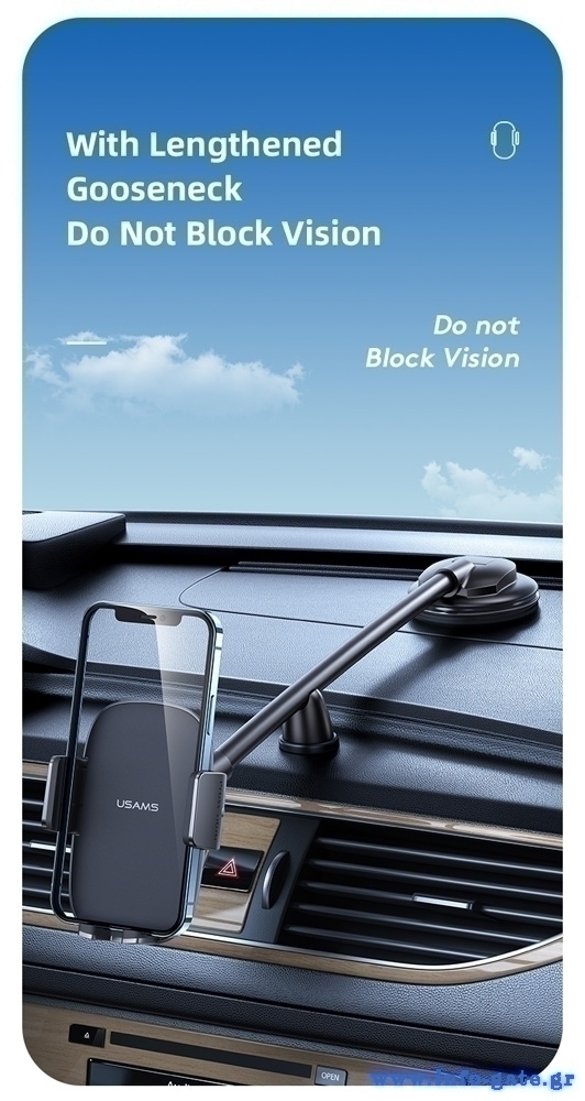Διαθέτει εύκαμπτο βραχίονα με προσαρμόσιμη γωνία και στερεώνεται εύκολα σε οποιαδήποτε επίπεδη επιφάνεια του αυτοκινήτου.