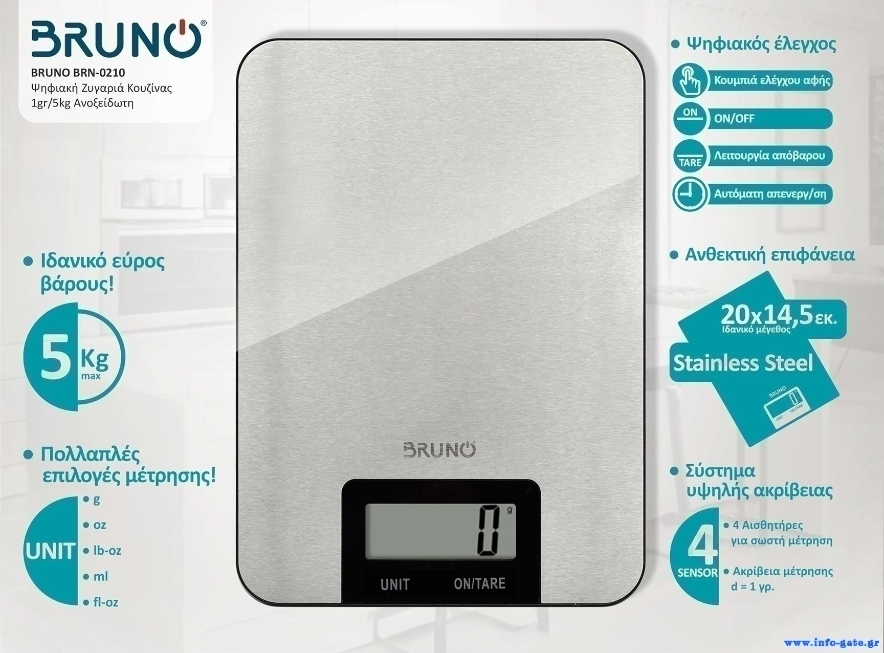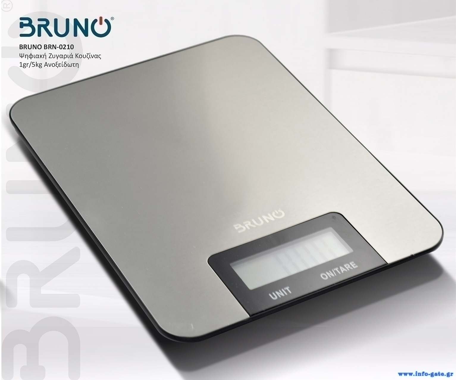 BRUNO ψηφιακή ζυγαριά κουζίνας BRN-0210, 1gr/5kg, ανοξείδωτη