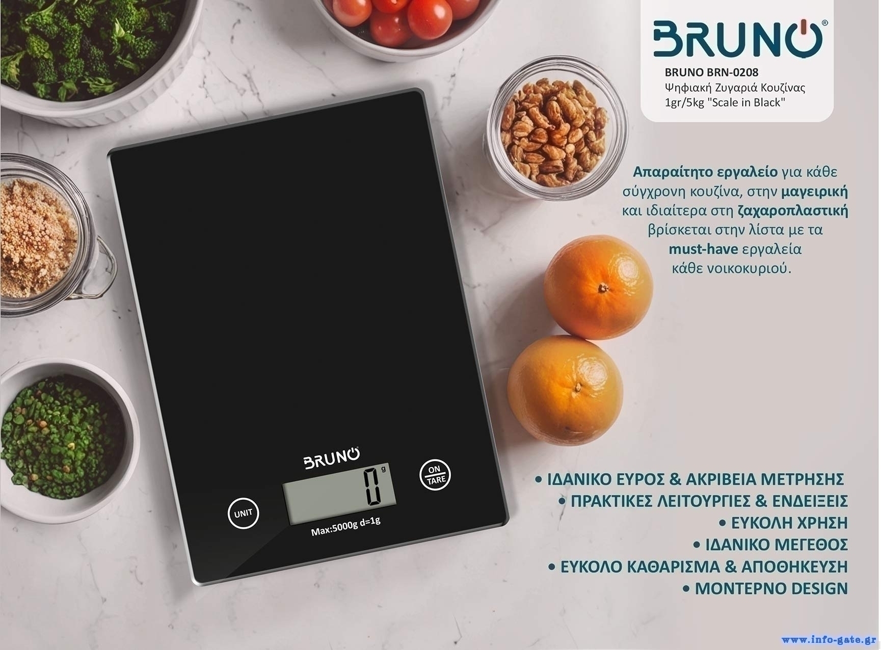 BRUNO ψηφιακή ζυγαριά κουζίνας BRN-0208, 1gr/5kg, Scale in Black