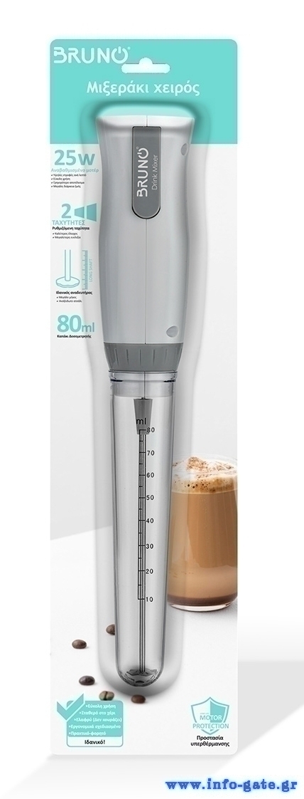 BRUNO μιξεράκι χειρός BRN-0090, 25W, καπάκι δοσομετρητής, λευκό