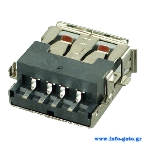 USB 2.0 Connector A TYPE, down MID Solder, Silver/Black