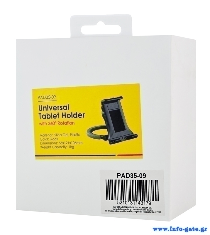 Είναι περιστρεφόμενη κατά 360° ενώ τα πτερύγια που ασφαλίζεται το tablet είναι επενδυμένα από αντιολισθητικό, μαλακό υλικό.