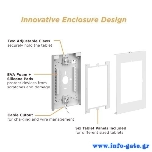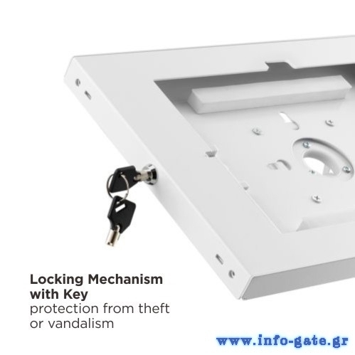 Μεταλλική βάση για tablet από 9.7" έως 11" με αντικλεπτικό μηχανισμό κλειδώματος με κλειδί. Η επιφάνεια τοποθέτησης του tablet διαθέτει αντιολισθητικά pads σιλικόνης ώστε να είναι πιο σταθερή και να μην γλιστράει η συσκευή.