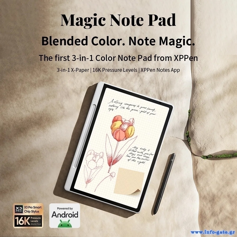 Το έγχρωμο ψηφιακό σημειωματάριο Magic Note Pad της XP-PEN συνδυάζει οθόνη 10.95", γραφίδα υψηλής ακρίβειας, Android 14 και μπαταρία 8000mAh σε ένα ελαφρύ και λεπτό σώμα.