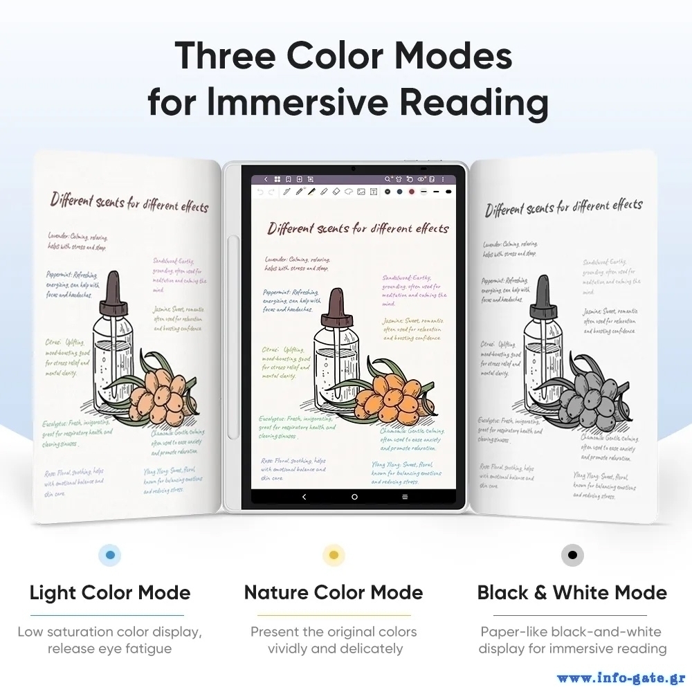Μειώνει την επιβλαβή μπλε ακτινοβολία, προστατεύοντας την υγεία των ματιών σας, ενώ παράλληλα προσφέρει προβολή σαν σε χαρτί για άνετη ανάγνωση και σχεδίαση.