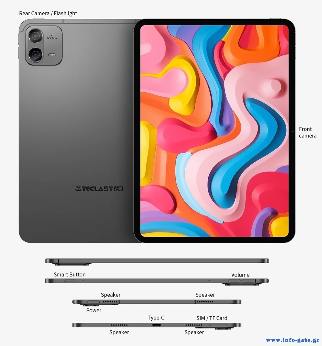 TECLAST tablet ArtPad Air, 11", 8/128GB, 4G, Android 15, 8000mAh, γκρι